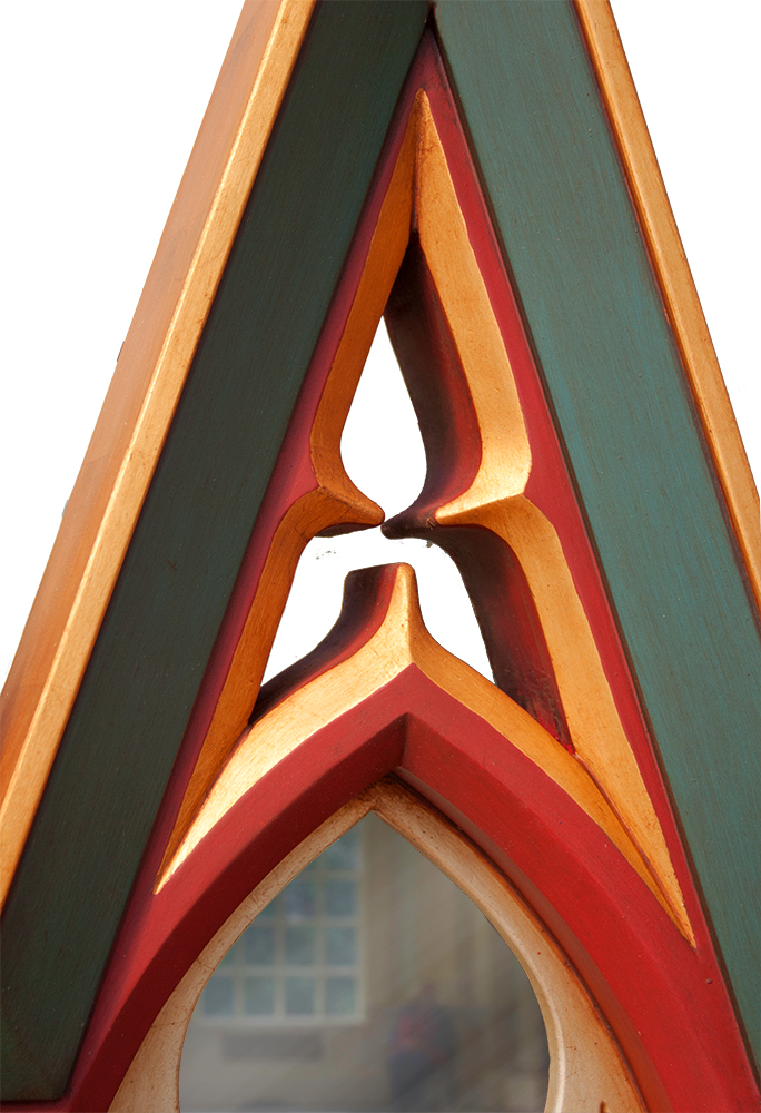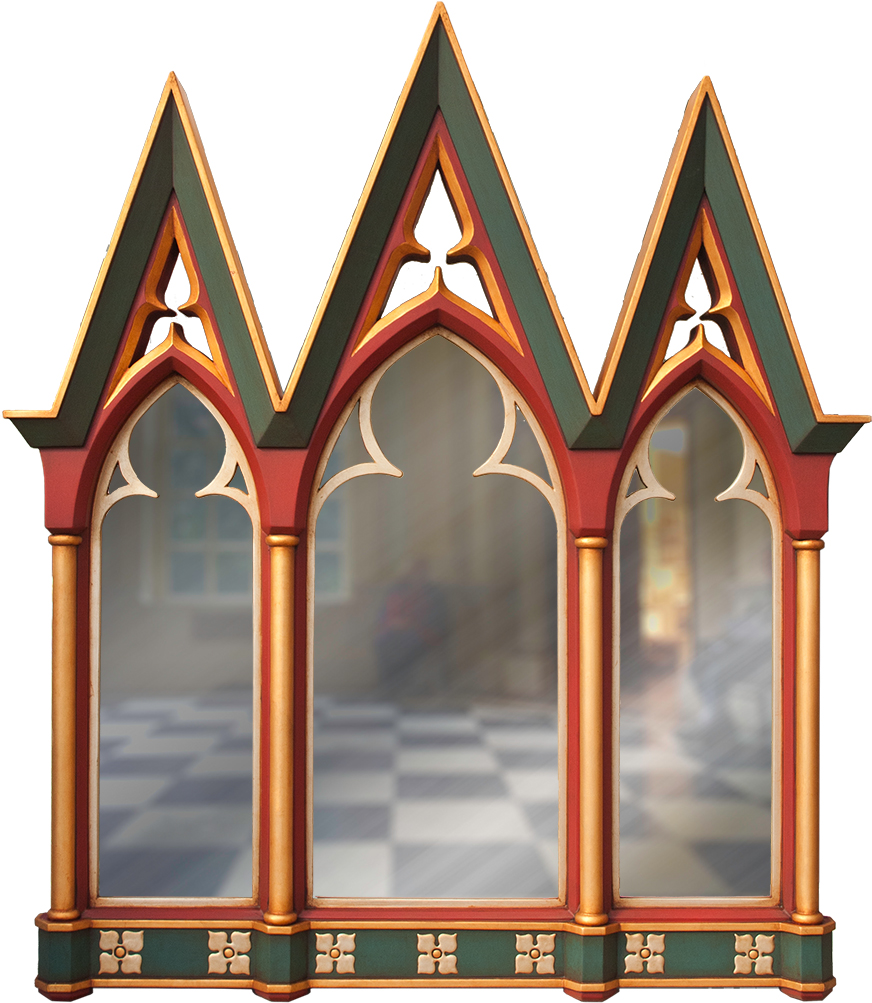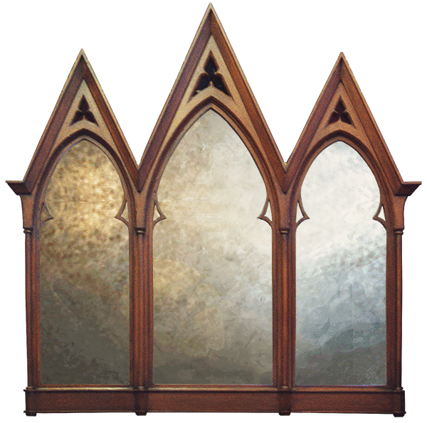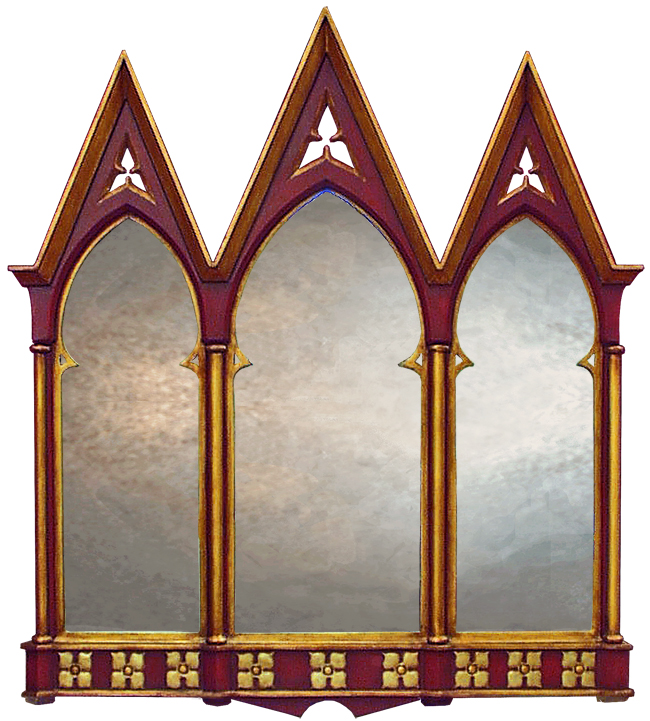 This beautiful Gothic Triptych Overmantle mirror is the ultimate in decorative mirrors with its elegant perpendicular Gothic style, which are picked out by the subtle use of an authentic true to period gilded & painted finish and quatrefoil combo\\\’ detailing at it\\\’s base.