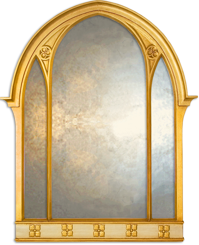 This Large Gothic Overmantle Mirror avoids the problem of arched mirrors looking squat when there isn’t sufficient height to allow for a more elegant proporioned arch by adopting a triptych (triple) gothic arch design The result is a stunning Gothic arched mirror resplendent in an authentic true to period gilded finish.