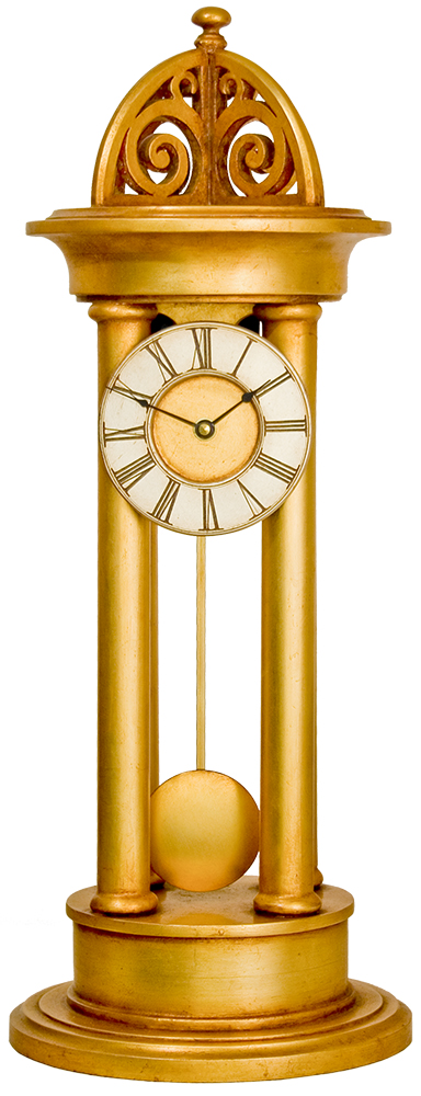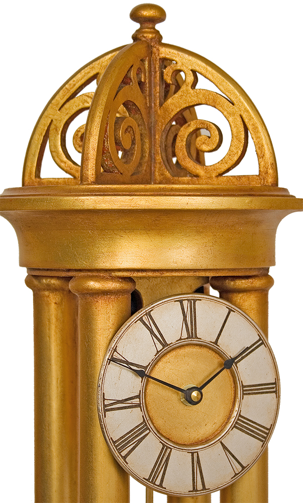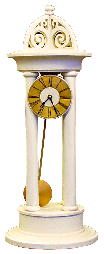 This unusual Rotunda Pendulum Clock was inspired by an architectural ‘folly’ I saw and thought would lend itself to an interesting ornate decorative mantle clock. The classical styling of this elegant mantel clock is picked out in either an off white Carrara marble finish or an antiqued gold gilded finish. In keeping with the hand made clock status the dials are hand etched.