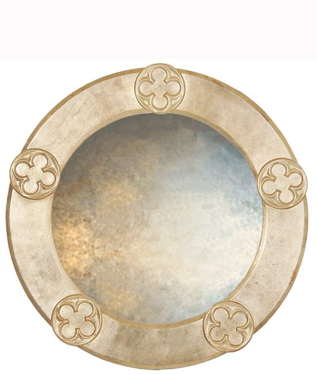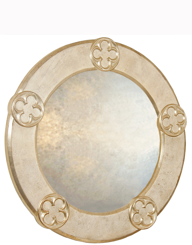 As the name suggests this Quatrefoil Round mirror incorporates a medieval device called a quatrefoil that derives from the old French for ‘four leaves’. To further enhance the Gothic feel of this beautiful decorative mirror I finish them in an authentic gold or silver mirror finish.