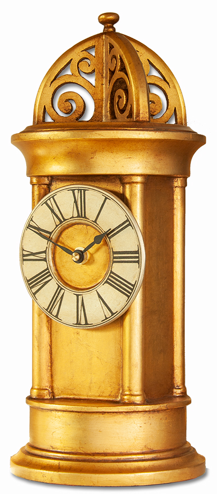 This Small Rotunda Carriage clock is the smaller version of the large Rotunda Mantle Clock which was inspired by a Rotunda ‘folly’ that I saw and thought would make an unusual decorative mantle clock. The classical styling of this elegant mantel clock is enhanced by the use of a true to period gilded finish. As hand-made clocks even the dials are hand etch.