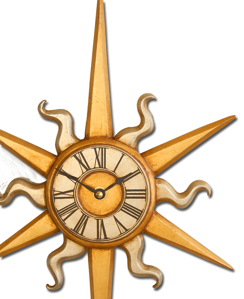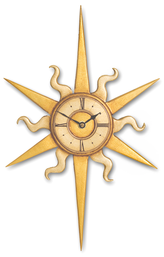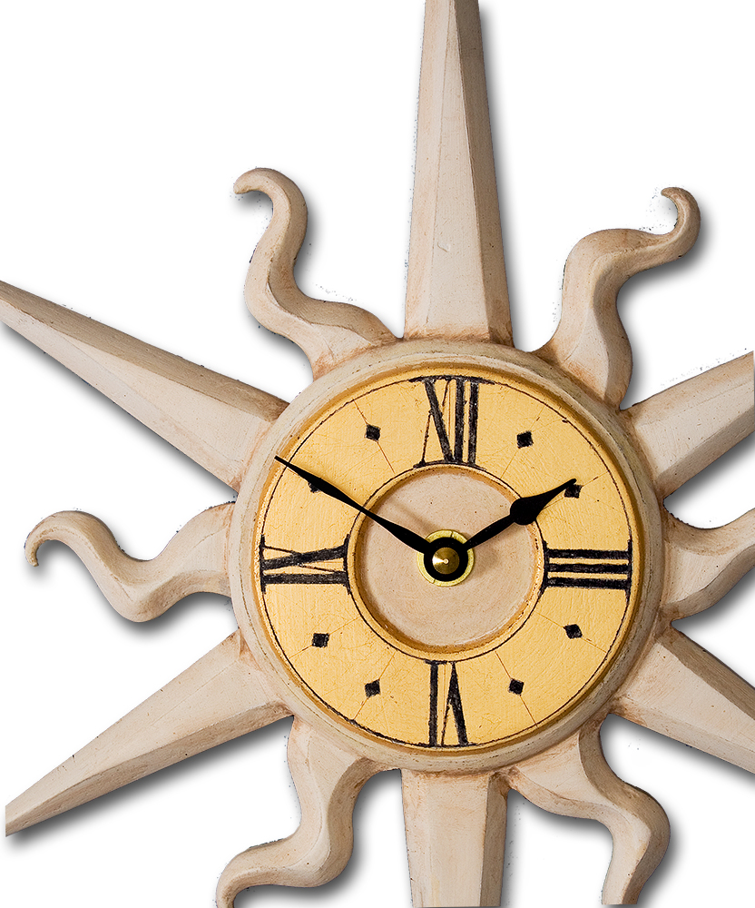 These striking gilded Small Sun Clocks are a bit different from other decorative wall clocks with their gilded gold and silver leaf finish and hand etched dials. These versatile wall clocks will compliment just about any interior making them an ideal gift or decorative artefact for your home.