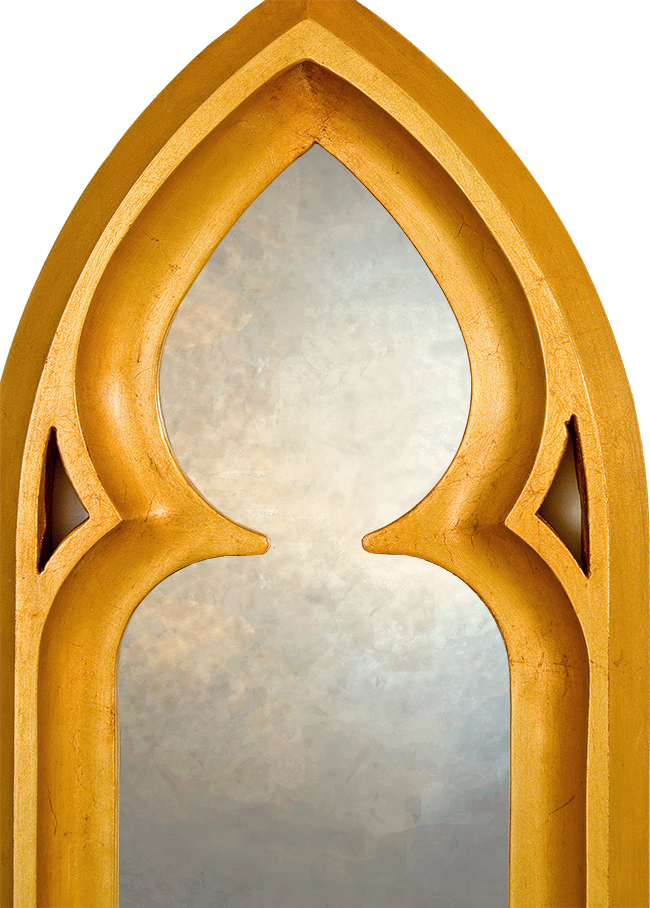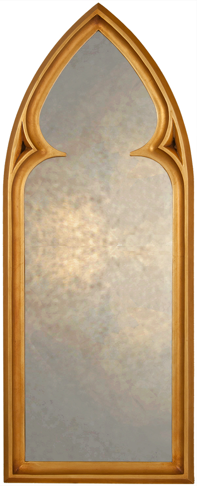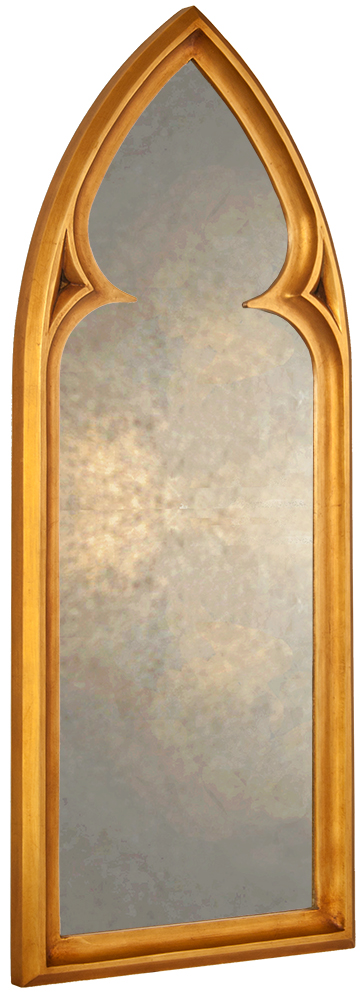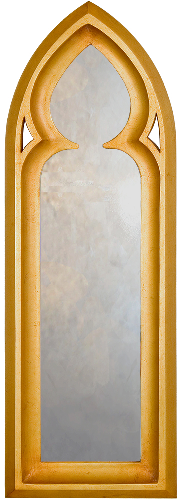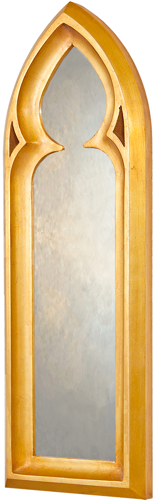 The clean, simple lines of this Gothic mirror give this arched mirror a true to period look which is further enhanced by the use of an authentic gilded finish that has been antiqued in character with the styling of the piece.